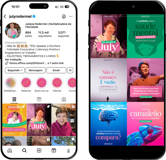 Aprenda na prática como realizar todos os serviços que podem contemplar os seus pacotes: Pesquisa de mercado, análise de marca, análise de perfil de Instagram, estratégia de conteúdo, universo de marca, padronização visual e posicionamento digital.